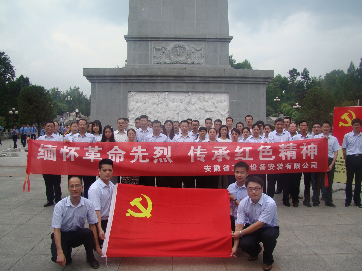 為隆重紀(jì)念中國共產(chǎn)黨成立96周年,喜迎黨的十九大,進(jìn)一步推進(jìn)“兩學(xué)一做”學(xué)習(xí)教育常態(tài)化制度化,深入開展“講政治、重規(guī)矩、作表率”專題教育,激勵廣大黨員堅(jiān)定理想信念,繼承和發(fā)揚(yáng)黨的光榮傳統(tǒng)和優(yōu)良作風(fēng)。7月7日,安徽安裝公司組織機(jī)關(guān)全體黨員赴金寨縣烈士紀(jì)念館開展“緬懷革命先烈,傳承紅色精神”黨員主題活動日。公司黨委書記胡六中,紀(jì)委書記李寬旭、副總經(jīng)理李原以及機(jī)關(guān)黨員同志共50余人參加了活動。