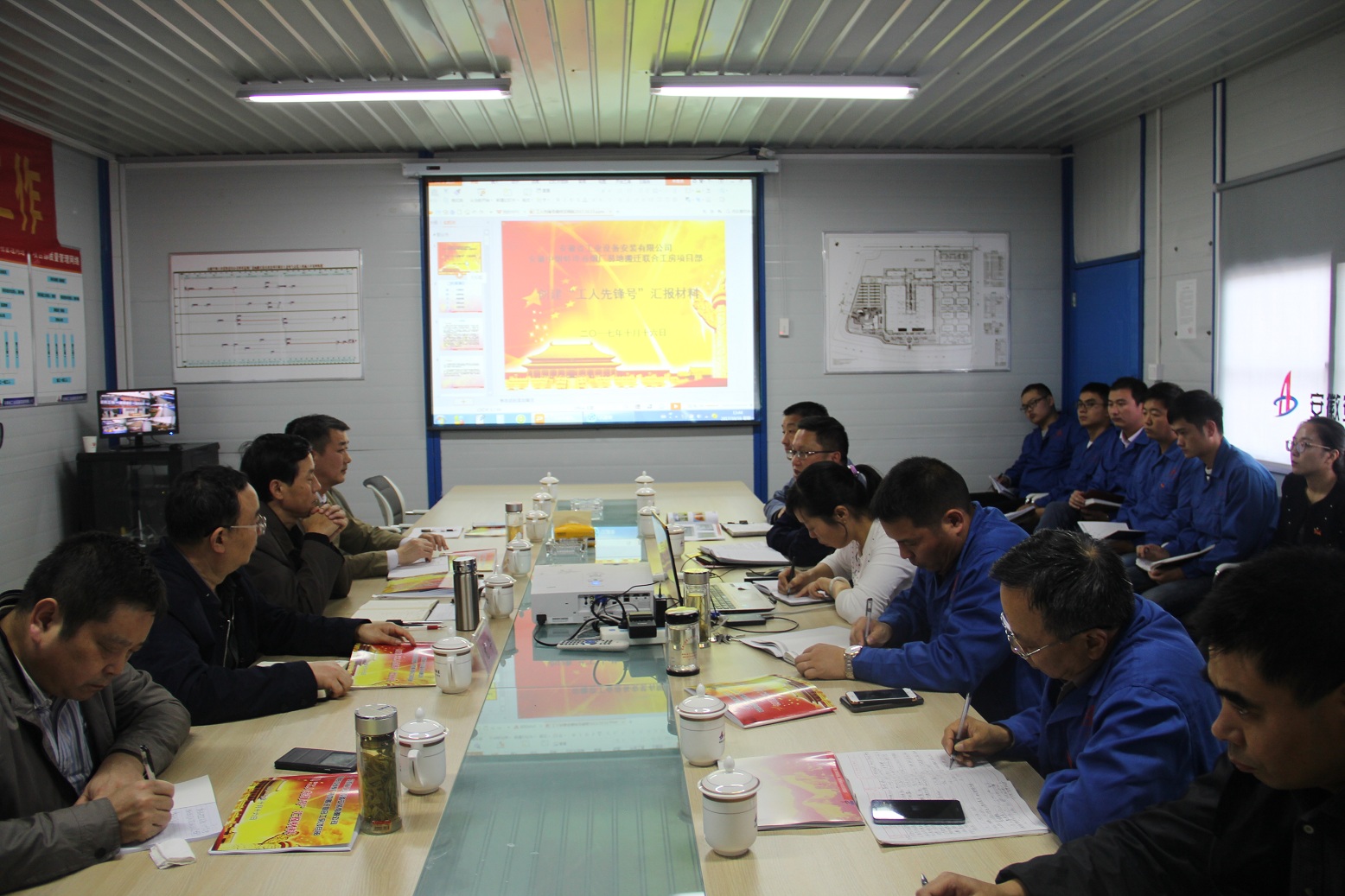 項(xiàng)目經(jīng)理趙銘亮在會(huì)上發(fā)言,以創(chuàng)建“工人先鋒號(hào)”為契機(jī),開(kāi)展一流工作,狠抓工程進(jìn)度和安全生產(chǎn),嚴(yán)把工程質(zhì)量和材料采購(gòu)關(guān),管控項(xiàng)目成本和資金;提供一流服務(wù),不斷提高服務(wù)質(zhì)量,讓客戶滿意,爭(zhēng)取在蚌埠卷煙廠項(xiàng)目承接任務(wù)超億元;創(chuàng)造一流業(yè)績(jī),開(kāi)展提質(zhì)增效活動(dòng),確保“黃山杯”、爭(zhēng)創(chuàng)“魯班獎(jiǎng)”;打造一流團(tuán)隊(duì),努力打造學(xué)習(xí)型組織,團(tuán)結(jié)協(xié)作和諧共進(jìn)的團(tuán)隊(duì)。