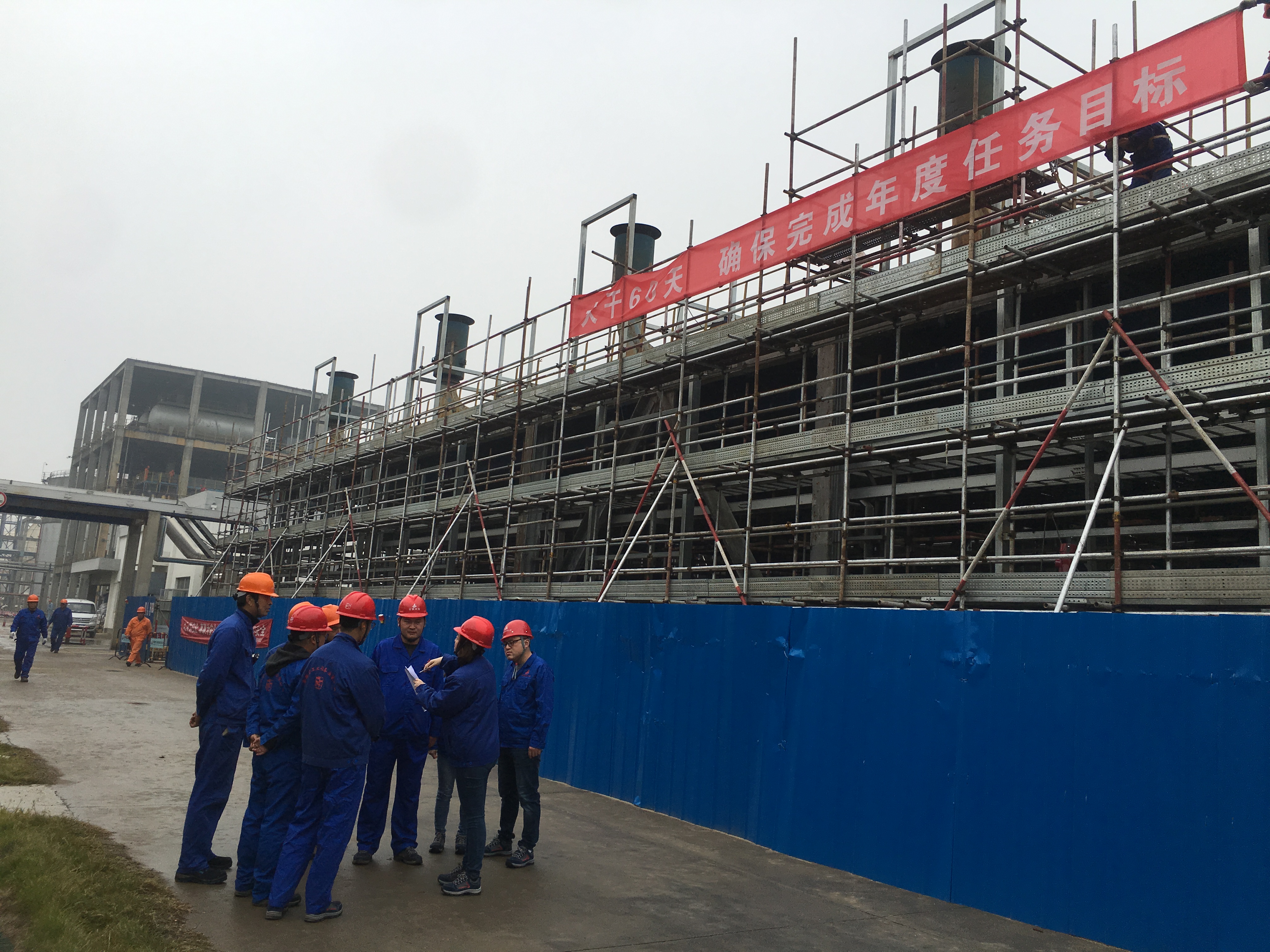 為響應(yīng)公司“大干60天”勞動(dòng)競(jìng)賽活動(dòng),把此項(xiàng)活動(dòng)落到實(shí)處,11月15日上午,安慶分公司黨支部書記、工會(huì)主席、副經(jīng)理劉紅艷攜相關(guān)管理人員冒著綿綿細(xì)雨前往分公司承建的“安徽力天環(huán)??萍脊煞萦邢薰驹鏊軇┭b置循環(huán)產(chǎn)業(yè)鏈建設(shè)項(xiàng)目5萬噸/年苯酐裝置項(xiàng)目”和“中石化安慶分公司水污部污水處理場(chǎng)鼓風(fēng)機(jī)降噪改造項(xiàng)目”兩個(gè)參賽的工程施工現(xiàn)場(chǎng)督導(dǎo)檢查競(jìng)賽開展情況,以此推進(jìn)勞動(dòng)競(jìng)賽的實(shí)施,促進(jìn)項(xiàng)目的順利完工。
