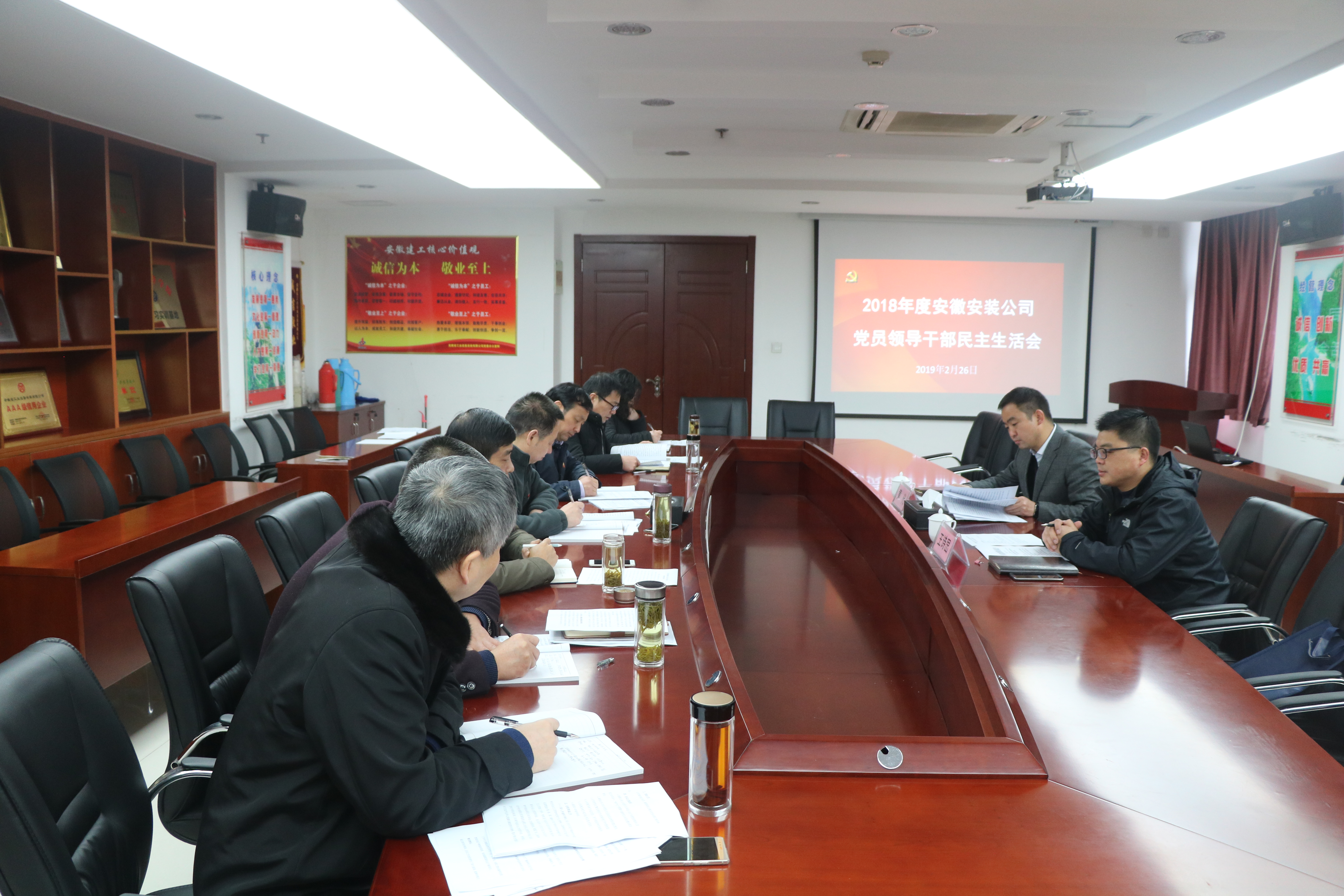 安徽安裝公司黨委對開好這次民主生活會高度重視,認(rèn)真研究,根據(jù)本次民主生活會的主題:強(qiáng)化創(chuàng)新理論武裝,樹牢“四個意識”,堅定“四個自信”,堅決做到“兩個維護(hù)”勇于擔(dān)當(dāng)作為,以求真務(wù)實(shí)作風(fēng)堅決把黨中央決策部署落到實(shí)處。制定了工作方案,黨委理論學(xué)習(xí)中心組組織了專題學(xué)習(xí)研討,通過下基層走訪調(diào)研、談心談話、設(shè)置意見箱、發(fā)放征求意見表等形式廣泛征求意見建議。在此基礎(chǔ)上,公司領(lǐng)導(dǎo)班子及成員緊密聚焦主題,聯(lián)系“三查三問”和思想工作具體事例,重點(diǎn)從思想政治、精神狀態(tài)、工作作風(fēng)等3個方面深入查擺突出問題,認(rèn)真撰寫對照檢查材料,為開好本次民主生活會做了充分準(zhǔn)備。