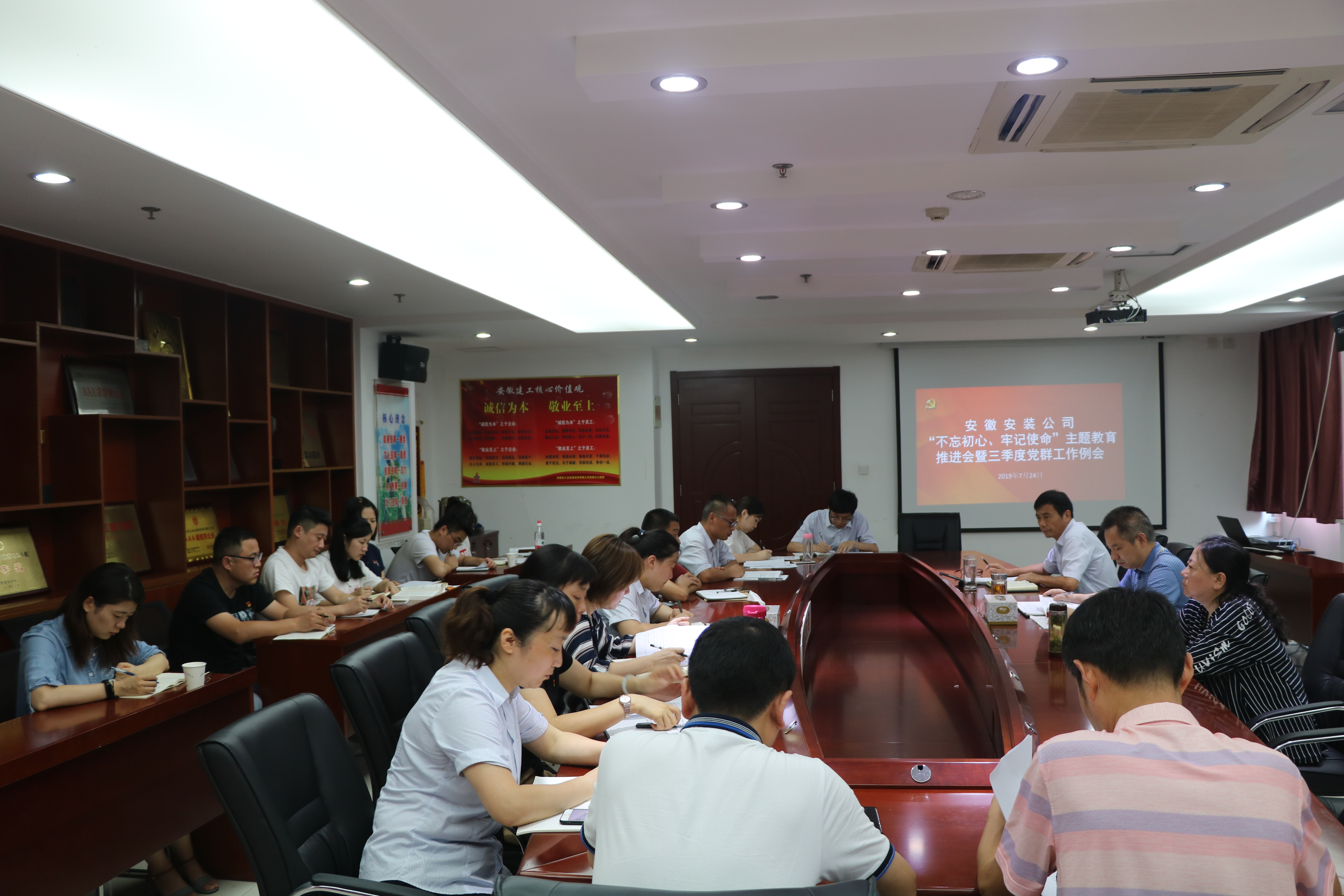 7月24日下午,安徽安裝公司黨委召開“不忘初心、牢記使命”主題教育工作推進(jìn)會暨三季度黨群工作會議。公司有關(guān)領(lǐng)導(dǎo)、黨群部門人員、所屬各黨支部書記、工會及團(tuán)支部主要負(fù)責(zé)同志參加會議,會議由公司黨委委員、紀(jì)委書記、工會主席李寬旭主持。