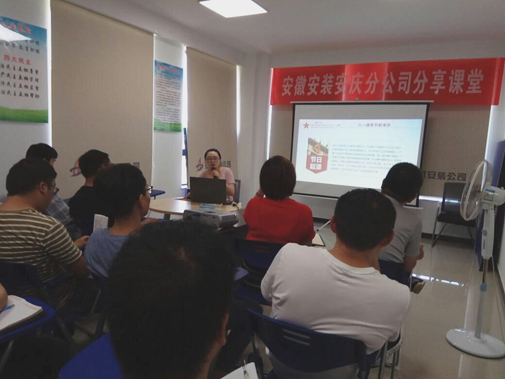 8月1日下午,安慶分公司黨支部充分利用分享課堂,組織全體員工開展“不忘初心,牢記使命”主題教育之慶祝中國人民解放軍建軍92周年活動(dòng)。