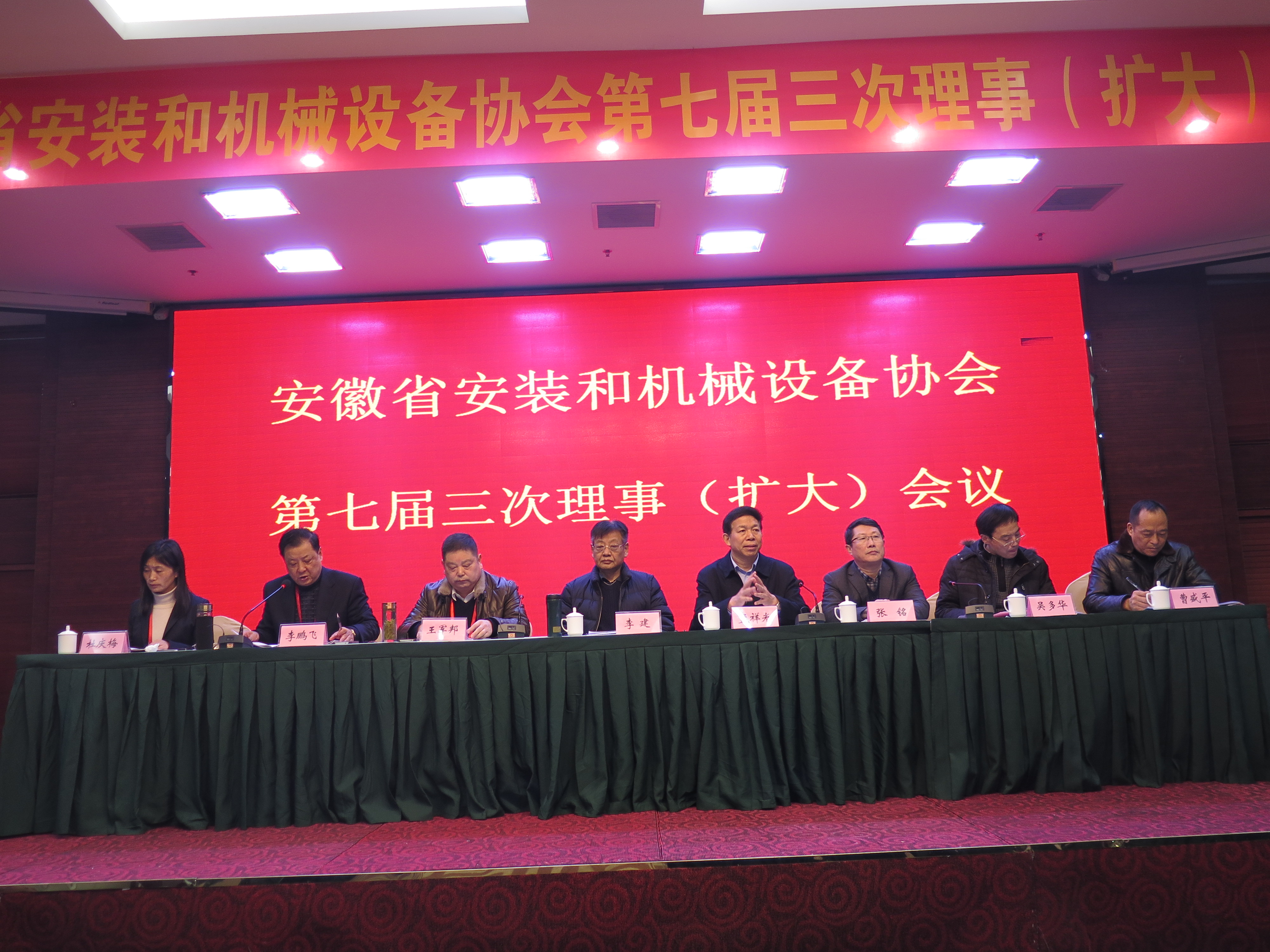 新年伊始,萬(wàn)象更新,2019年1月3日-4日,安徽省安裝和機(jī)械設(shè)備協(xié)會(huì)在安徽蚌埠召開(kāi)第七屆三次理事(擴(kuò)大)會(huì)議。安徽建工集團(tuán)有限公司總經(jīng)理助理、協(xié)會(huì)會(huì)長(zhǎng)、法定代表人王軍邦,駐會(huì)副會(huì)長(zhǎng)李鵬飛,秘書長(zhǎng)杜慶梅,蚌埠市政協(xié)副主席、秘書長(zhǎng)孟祥光,蚌埠市住建委黨委書記、主任張銘,安慶市建筑管理處副主任吳多華,六安市建筑工程質(zhì)量安全監(jiān)督站副站長(zhǎng)曹盛平等領(lǐng)導(dǎo)出席會(huì)議。會(huì)議特邀安徽省政協(xié)常委、原安徽省住房和城鄉(xiāng)建設(shè)廳巡視員李建作建筑行業(yè)轉(zhuǎn)型升級(jí)發(fā)展的專題報(bào)告。各市縣行業(yè)主管部門負(fù)責(zé)人,副會(huì)長(zhǎng)、理事和會(huì)員單位負(fù)責(zé)人、專家、聯(lián)絡(luò)員及受表彰的企業(yè)代表,受表彰的 2017-2018年度“協(xié)會(huì)之友”、領(lǐng)取職稱證書的企業(yè)代表等近300人參會(huì)。會(huì)議由副會(huì)長(zhǎng)李鵬飛主持。