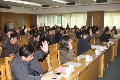 安徽省安裝協(xié)會第六屆會員大會于2009年12月28日在安徽合肥八一賓館隆重召開。來自全省50多家企業(yè)78名新老會員代表參加了此次大會。中國安裝協(xié)會秘書長楊存成,安徽省建設(shè)廳副廳長李建、副巡視員王茂新,安徽省民政廳社團(tuán)管理局王世剛處長等領(lǐng)導(dǎo)蒞臨會議。中國安裝協(xié)會、上海市安裝協(xié)會、江蘇省安裝行業(yè)協(xié)會、浙江省安裝行業(yè)協(xié)會、山東省安裝協(xié)會、四川省建筑業(yè)協(xié)會及安徽省建筑業(yè)協(xié)會等兄弟協(xié)會發(fā)來賀信、賀電。
