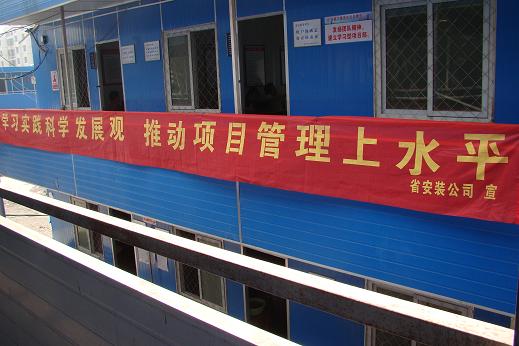 省政務(wù)服務(wù)中心及綜合樓和合肥中心醫(yī)院項目屬省、市重點工程之一。由多家大中型施工企業(yè)共同承建。我公司承擔的安裝工作量分別在1582萬和2800萬以上,是具有相當規(guī)模和社會影響的工程項目。合肥項目黨支部在開展第二批實踐科學發(fā)展觀活動中,因地制宜地開展宣傳活動。分別在這兩個項目施工現(xiàn)場懸掛了《深入開展學習實踐科學發(fā)展觀活動》和《學習實踐科學發(fā)展觀推動項目管理上水平》的橫幅標語。目前是整個施工現(xiàn)場開展學習實踐科學發(fā)展觀活動中唯一在現(xiàn)場宣傳的一家施工企業(yè)。