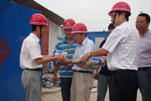 7月27日上午,集團(tuán)公司黨委書記張海平,工會(huì)副主席李鵬飛等集團(tuán)工會(huì)干部一行,在公司戴書記及工會(huì)、生產(chǎn)管理處同志陪同下,來到安裝公司“安徽中煙工業(yè)公司新辦公區(qū)附屬樓安裝工程”項(xiàng)目部,看望并慰問了正在高溫下施工的一線職工,將綠豆、礦泉水等物品分發(fā)到職工手中,為職工送去了夏日的清涼問候和組織的關(guān)愛。