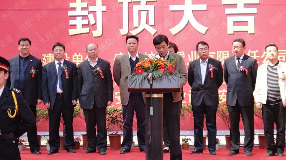 皖投置業(yè)總經(jīng)理耿文女士在慶典上發(fā)表講話,對我公司全體人員的工作給予了充分的肯定,并表示皖投水岸星城一期三標(biāo)段工程的順利封頂,奠定了皖投置業(yè)與省安裝公司成為長期戰(zhàn)略合作伙伴的基礎(chǔ)。